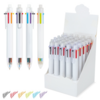 Set expositor de 25 bolígrafos con escritura en 6 colores diferentes.