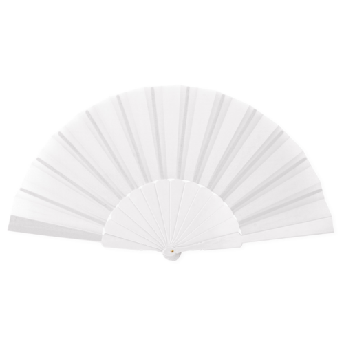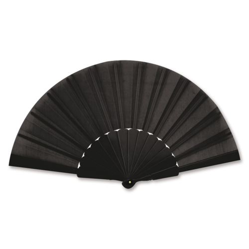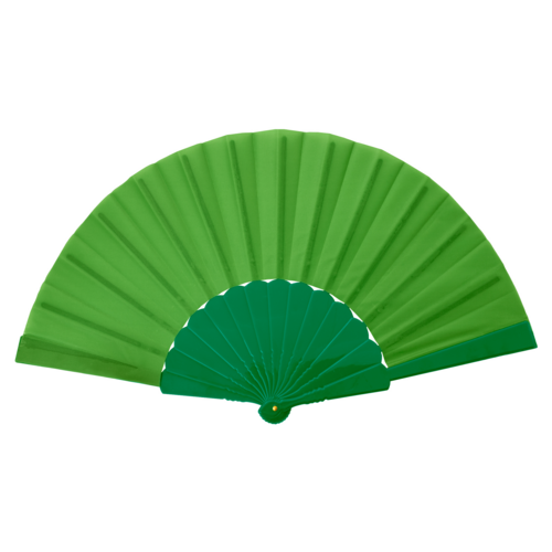 Abanico fabricado con varillas de plástico y acabado en poliéster, disponible en una gran variedad de colores.