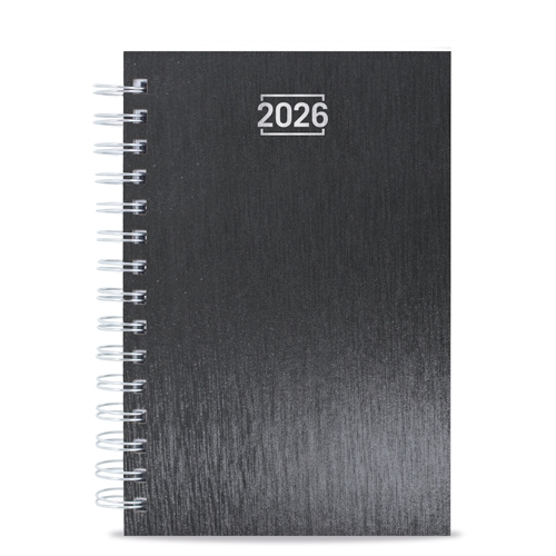 Agenda de anillas día página efecto aluminio con tapas rígidas en colores metalizados.