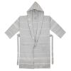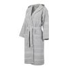 Albornoz fabricado integramente en algodón 100%, con moderno estampado de franjas horizontales en gris.