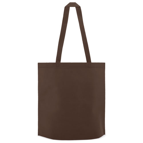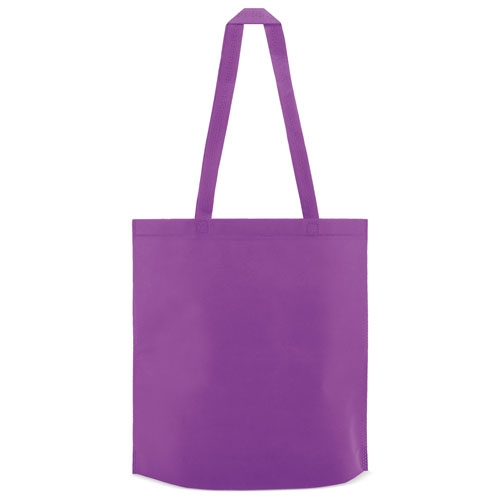 Bolsa fabricada en no woven con fuelle y asa larga.
