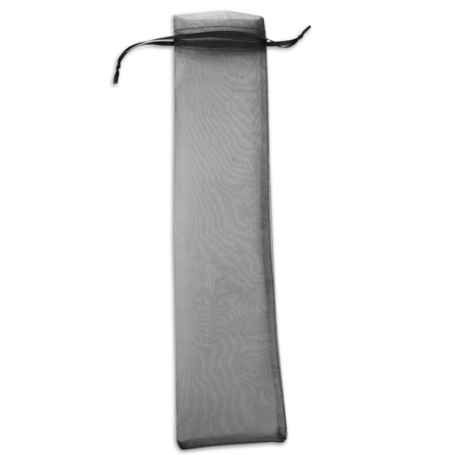 Bolsa de organza fabricada en poliéster, ideal para regalar abanicos o artículos similares gracias a su tamaño.