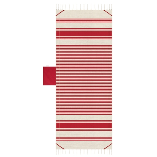 Toalla de playa fabricada en algodón, ideal para tumbonas y hamacas. Incluye un práctico bolsillo en el que guardar de forma cómoda objetos para tenerlos siempre a mano, o plegar la toalla para guardarla dentro del mismo.