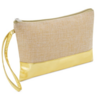 Combina el estilo natural del Jute con la elegancia de la polipiel metalizada en tono dorado en este neceser práctico y estiloso. Asa de polipiel en combinación, y cremallera Deluxe. Amplia zona de fácil marcaje.