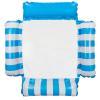 Colchoneta de agua, fabricada en PVC y malla, ideal para relajarse en picinas. Disponible en color azul y naranja con franjas blancas.