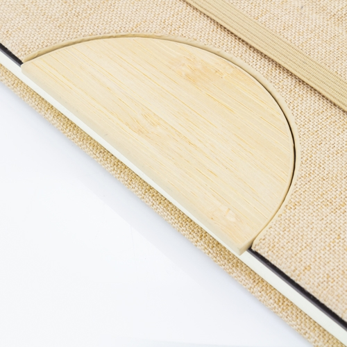 Cuaderno ecológico fabricado con bambú y materiales reciclados, con posibilidad de convertirse en una práctica base para tu móvil o tablet. Contiene 50 hojas con lineas de papel reciclado.