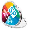 Espejo metálico con forma de corazón, que incluye una chapa especial para sublimación a todo color.