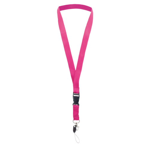 Lanyard de poliéster, disponible en una gran variedad de colores. Disponible con enganches para móvil e identificacion.
