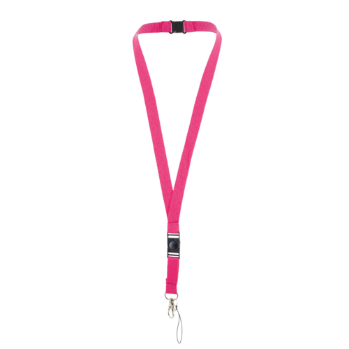 Lanyard de poliéster, disponible en una gran variedad de colores. Disponible con enganches para móvil e identificacion.