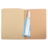 Libreta de cartoncillo, con terminación del lomo con costuras. En su interior contiene de 40 hojas lisas. Dispone de un práctico bolsillo interior para guardar documentos.