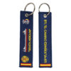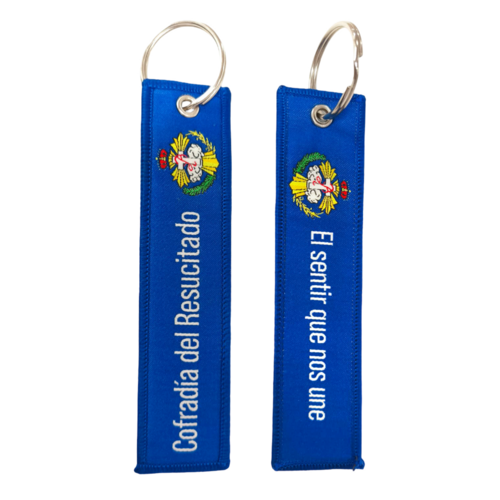 Llavero tejido de fabricación especial, con grabación a dos caras en jacquard o bordado. Anilla metálica.