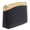 Monedero realizado en un tejido similar al yute, y un aplique de polipiel en la parte superior.Disponible en 4 colores Rojo, marino, Negro y Crudo.