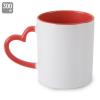 Mug con interior y asa en forma de corazón en color rojo. Acabado especial para sublimación.