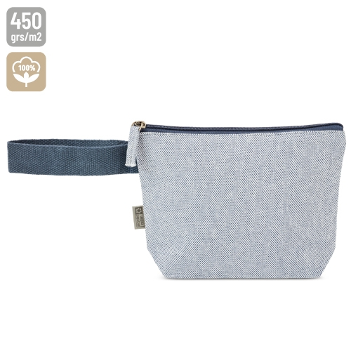 Neceser fabricado en algodón reciclado de aspecto jaspeado con asa de color.