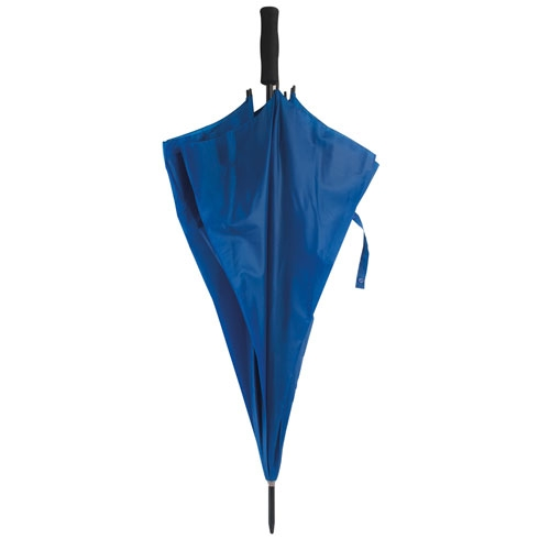 Paraguas antivestica diseñado con mango tipo golf manual realizado en acero, empuñadura de cuacho y varillas antivestica que permite que el paraguas no se rompa en caso de fuerte viento.
