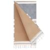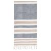 Toalla pareo disponible en varios colores, fabricada 100% en algodón de 160gr en su exterior, con un diseño moderno a rayas. Su interior presenta una toalla de rizo 100% poliéster de 180gr. Acabado de flecos trenzados en los extremos.