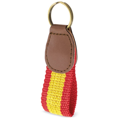 Llavero de polipiel, incluye cinturón con detalle de bandera de España.