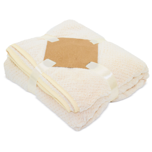 Manta aterciopelada de tacto suave, fabricada en 85% poliéster y 15% poliamida. Incluye bolsa de organza y un cartoncillo perfecto para su grabación.